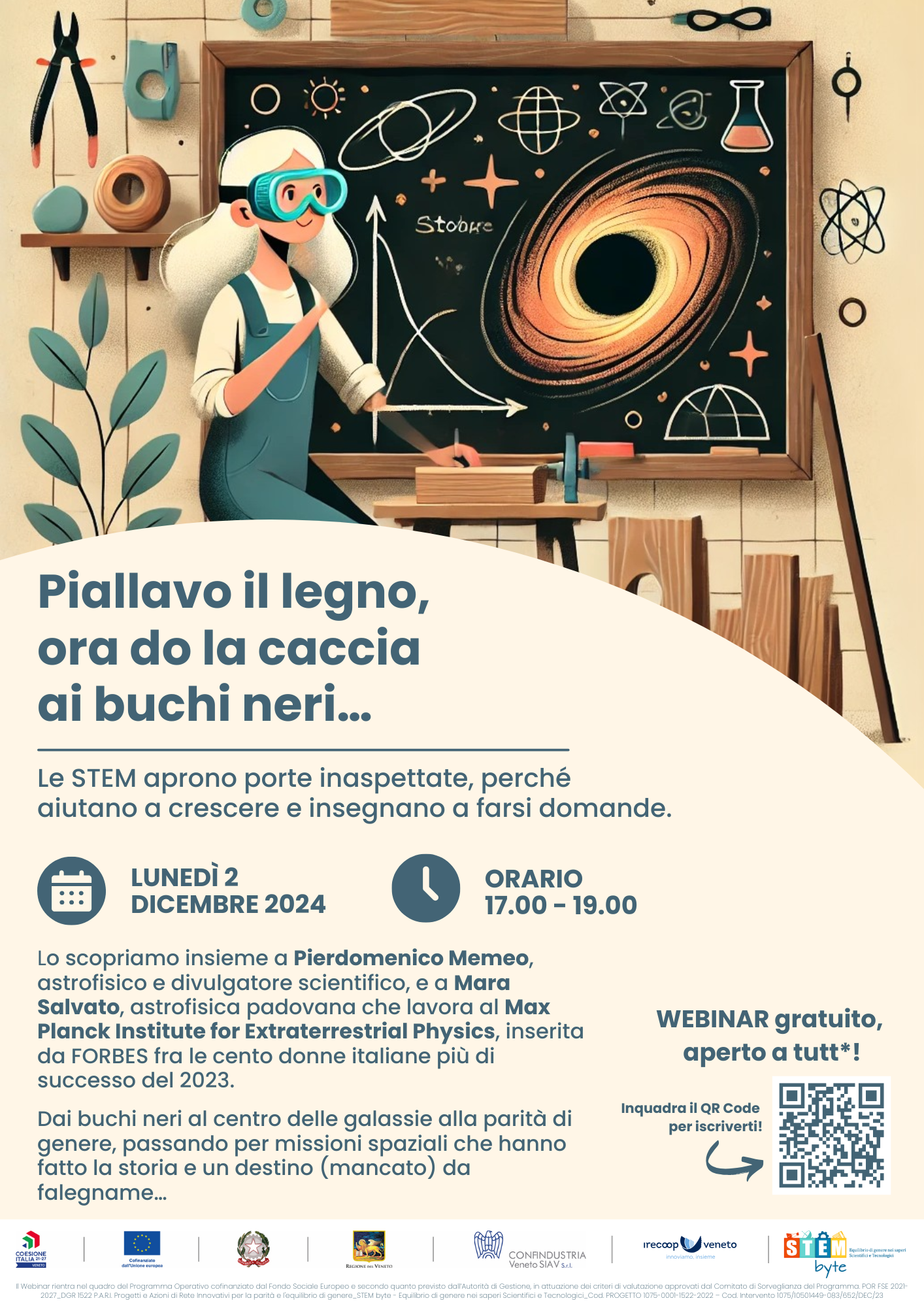 “Piallavo il legno, ora do la caccia ai buchi neri…“, un webinar durante il quale professionisti dell’ambito della ricerca scientifica e della scuola ci daranno i punti chiave per orientarci… ad orientare le nostre ragazze e i nostri ragazzi.